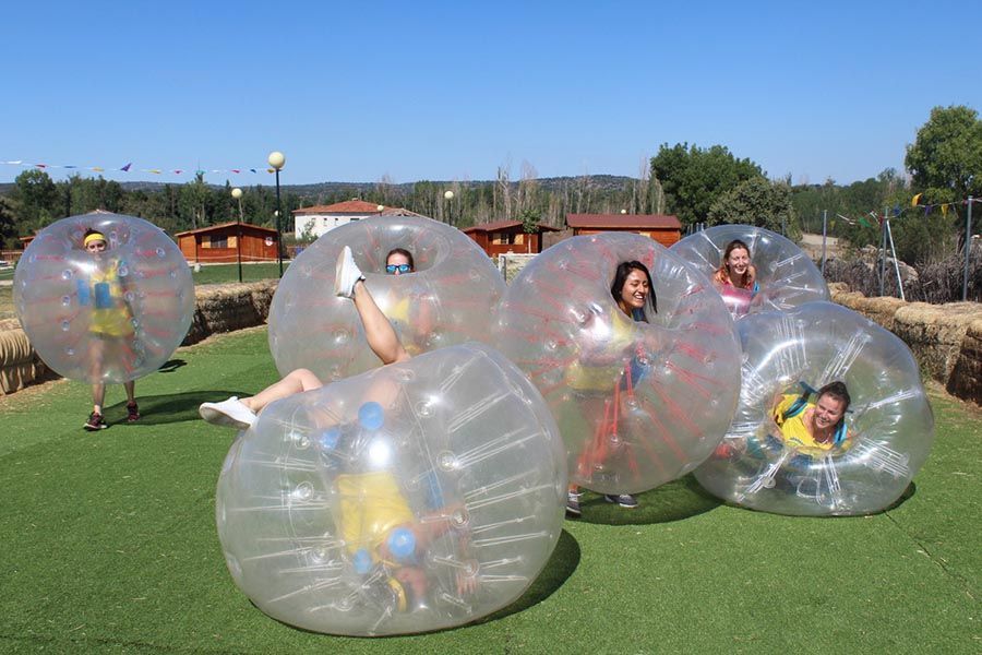 Otra de las actividades que te ofrecemos en nuestro recinto es la del fútbol burbuja, ¿todavía no has oído hablar de ello? Se trata de un juego que está triunfando en las grandes ciudades europeas y que te proporcionará grandes dosis de diversión. Se trata de participar en un encuentro futbolero que es un tanto especial… Y es que los jugadores, en lugar de moverse libremente por el campo, ¡irán metidos dentro de burbujas gigantes! Por tanto, el objetivo no es tanto chutar el balón sino intentar mantenerse en pie. ¡Una actividad divertidísima!