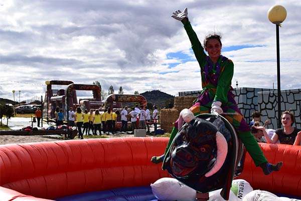 Otra de las instalaciones que encontrarás en nuestro poblado y que están disponibles para tu grupo del trabajo es el toro mecánico. Se trata de juego típico en el que os sentiréis que participáis en un auténtico ruedo y donde el objetivo está claro: ¡intentar domar al toro y no caerse! Avisamos que es bastante complicado, sobre todo, cuando el toro aumenta la velocidad y los embistes son cada vez más difíciles de controlar. Sin embargo, ¡es divertidísimo! La persona que aguante más minutos sin caerse del toro, ¡es el que gana!