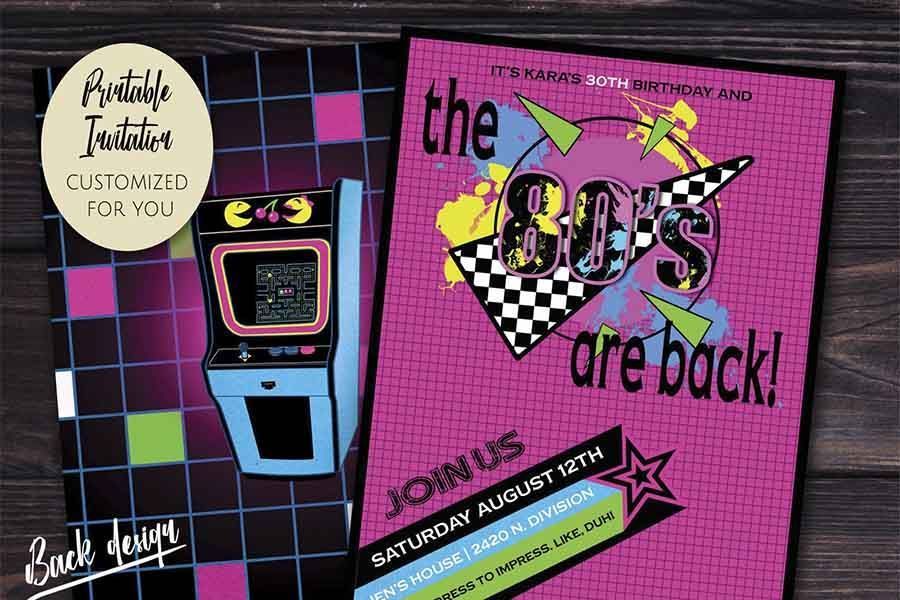 Para hacer que nuestra fiesta temática sea un auténtico éxito y los invitados queden encantados vuestra mejor arma será la imaginación y el hecho de mimar pequeños detalles. Para empezar con buen pie una idea original es que creéis un flyer o invitación a la fiesta, que por supuesto, tendrá que estar inspirado en los años 80: un sencillo vinilo en cuyo interior aparezca tu dirección y la indumentaria requerida, o si sois algo mañosos con el PhotoShop, podéis convertir la portada de algún disco típicamente ochentero en una divertida invitación a la fiesta de los años 80 en vuestra casa.