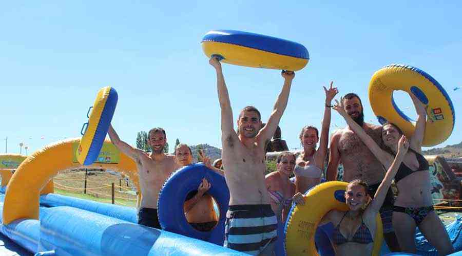 El Aqua Party es una de las sorpresas que os esperan si decidís venir a divertiros al poblado, además de las actividades que ya conocéis como el castillo hinchable gigante, los partidos de fútbol burbuja, discoteca nocturna y deportes de aventura. Montar un plan a la medida es tan sencillo como planificarse y elegir unas u otras pruebas dependiendo de lo que os apetezca.